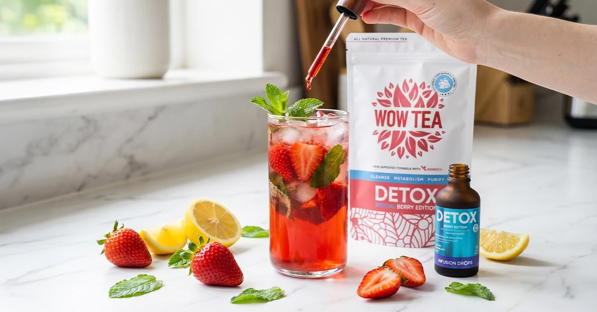 Запари чая и остави да се охлади. Добави лимоновия сок и капките. Напълни чаша с лед, ягоди и мента. Изсипи чая отгоре и разбъркай леко. Получаваш свежа, лека кисела и изключително освежаваща напитка. Всичко това в комбинация с наградената формула с боровинки и берберис ще те накара да се пречистиш от вътре и да върнеш плоското си коремче отново на лице.